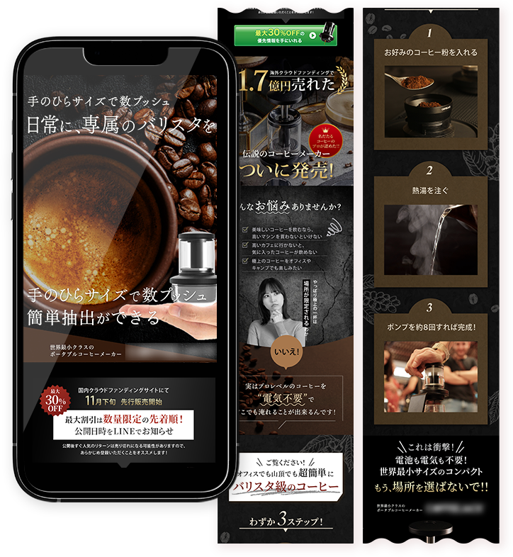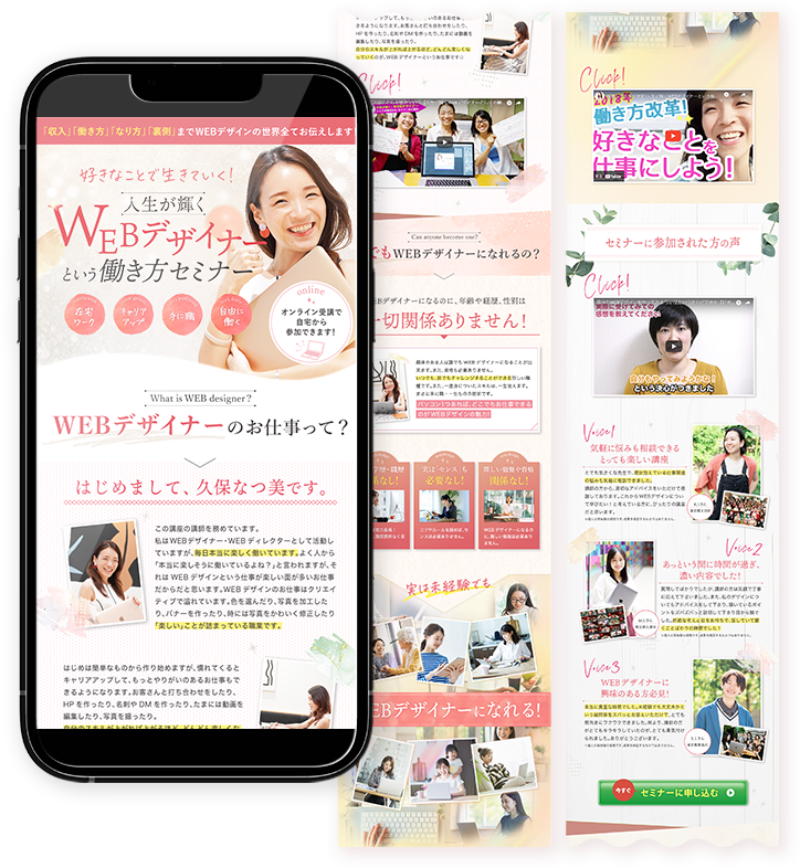 こんなお悩みはありませんか? Pattern1:「LPを作ろう」と思った時 ・LPを作りたいけど、どのように作ればよいか分からない ・似たようなLP制作会社が多く、どこに依頼すればよいか分からない Pattern2:既にLP作成の経験がある方 ・テンプレ的なデザインで他社と差別化できていない ・自分で作ってみたけど、やっぱり不格好で売れる気がしない ・サービスの魅力がうまく伝わらず、問い合わせが増えていない ・LPのデザインがチープで、商品の価値が安く見えている気がする 『大手のLP制作会社に依頼したからと言って、本当にお客様の心を掴むLPができるとは限りません。』 ・成功例のテンプレートを利用した、一律のデザインになりがち ・ターゲットのお客様の感性に刺さるビジュアルになっていない ・あなたのサービスの個性や想いが反映されず、どこかで見たようなLPになっている ・男性目線、女性目線の両方を持ったデザイナーが少ない ・結局、良いデザインが作れるかはデザイナーの経験やセンス次第 LPの成果のほとんどは、デザインで決まると言っても過言ではありません。どんなに素敵な商品でも、想いを込めてライティングしても、それを伝えるデザインでお客様の心を掴まなければ成果は出ません。例えばどんなに内容の優れた本があっても、表紙のデザインでワクワクさせなければ全く売れません。これと同様 LPのデザインであなたのサービスを魅力的に伝えられなければ、・どんなに良い商品・サービスでも、LPのせいで売れない ・顧客の印象に残らず、よくあるLPとして見逃されてしまう ・どれだけ広告費をかけても、クリックされずに無駄になる ・LP制作費をかけたのに成果が出ず、ビジネスが停滞する ・「信用できない」「安っぽい」と思われ、ブランドの価値が下がる 多くのお客様の目に触れるLPのデザインは、あなたの商品・サービスの価値を左右するほど重要なものです。 ですが、ご安心ください!私たち夫婦が、お客様の心をつかみ、事業をガツンと加速させるLPを作ります!私たちのデザインは、 ・唯一無二のデザインだから、他社と差別化できる ・夫婦で作るデザインだから、男性にも女性にも届くデザインができる ・お洒落で洗練されたLPが完成し、問い合わせが増える ・LPから顧客を獲得できるようになり、売上が安定する ・事業のブランドイメージが向上し、SNSで拡散されたり口コミが広まる あなたが商品やサービスに込めた想いをLPのデザインとして体現し、あなたの事業を成長させます! 無料のLP相談会開催中!!「どんなデザインがいいのかわからない…」「ターゲットに刺さる訴求を知りたい!」 そんなあなたのために、私たちほのぼの夫婦が最適なLPの方向性を一緒に考えます!勿論相談だけでもOK!!興味があるくらいの方もお気軽にどうぞ 私たちのLPが選ばれる3つの理由 理由①:【夫婦で作成する唯一無二のデザイン】男性、女性の感性を知り尽くしているからこそ、お客様の心を掴めます 私たちが最もこだわるのは、LPのデザインです。一般的なテンプレートデザインや素人感の滲むデザインでは、競合の中に埋もれてしまいます。お店が複数あったとして、目を惹くキレイな外観のお店と、古い、またはよく見かける外観のお店では当然キレイなお店に入りたいですよね。ですから、LPはあなたのサービスを体現する唯一無二のデザインで制作するべきなのです。また、夫婦で制作しているからこそ、男性、女性の感性、どちらの感性にも合わせることが可能です。ターゲットの心を掴み、直感的に「このサービスを利用したい」と感じるLPを制作します。 理由②:【SNS総フォロワー数2.3万人超えのデザイナー】お洒落で洗練されたデザインで既にファンを集めています 私たちはSNSにて、日々の生活を「スタイリッシュで洗練されたデザイン」で投稿しています。SNSの総フォロワーは2.3万人を超え、有難いことに投稿のデザインも好評をいただいています。SNSでフォロワーを獲得するためには、視覚的に訴求をすることが欠かせません。これはLPにおいても同じことが言えます。あなたのサービスに興味を持ってもらうためには、視覚的な訴求力が欠かせないのです。このSNSで培ってきた、視覚的な訴求力とマーケティングの知見を融合し、競合と差別化されたLPを制作します。魅力的なデザインと正しい情報設計で、お客様のサービスやブランドをより多くの人に届けるお手伝いをします。 理由③:【CTR5%超え、CVRが2倍増!】数字の成果として効果を実感できます! 私たちがコミットするのは、デザインだけではありません。LPとして成果を出すことにも最大限の工夫を凝らします。実際に、CTRが5%超え、CVRは2倍増と業界でも稀に見る成果をあげてきました。成果が出るLPを制作するためには、デザイナーにもマーケティングの知見が求められます。私たちは夫婦共にマーケティングについても深い知見があります。正しい情報の届け方や順番、お客様の悩みの見せ方、サービスや商品が